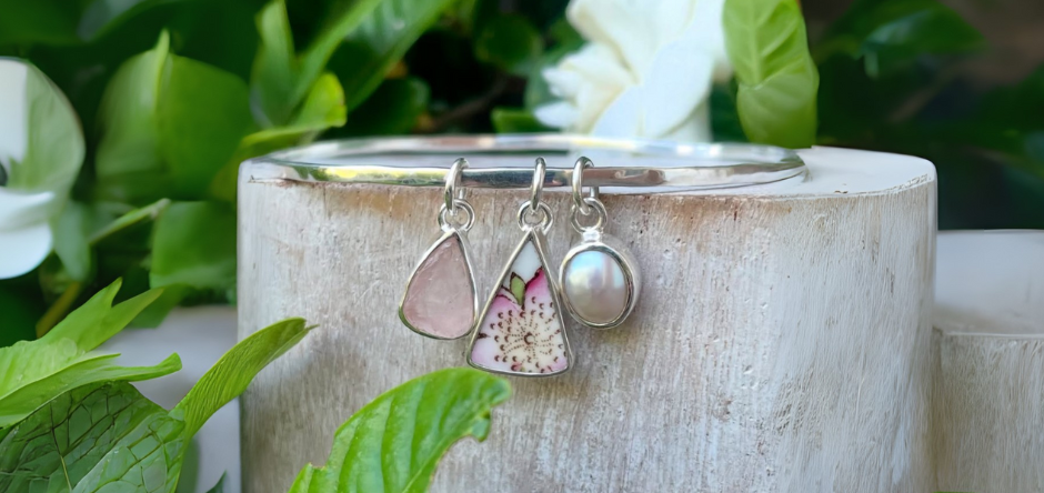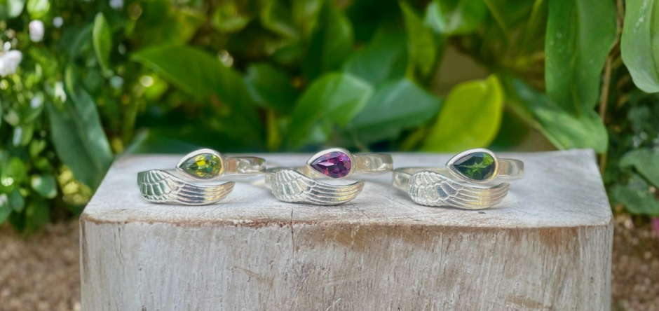 I’m Kathy, and I’ve been surrounded by creativity for as long as I can remember. My parents were potters, and their backyard workshop was always full of colour, texture, and endless inspiration. When I studied Art Education at university, majoring in Smithing, I set up a little corner of that workshop to begin making gemstone jewellery in sterling silver.