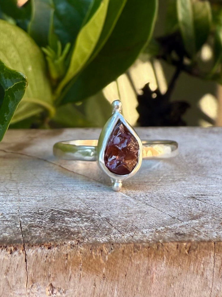 Petal Ring - Sterling Silver Ring with Raw Red Garnet