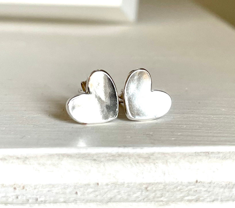 These sweet silver heart studs have been lightly hammer textured so the silver reflects the light.