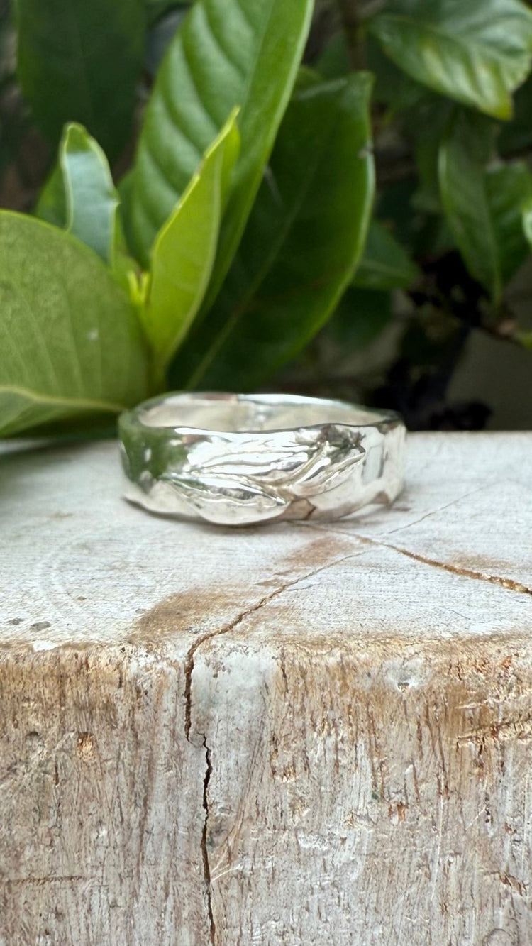 This handcrafted ring was made using the ancient process of lost wax carving, then cast in solid sterling silver.