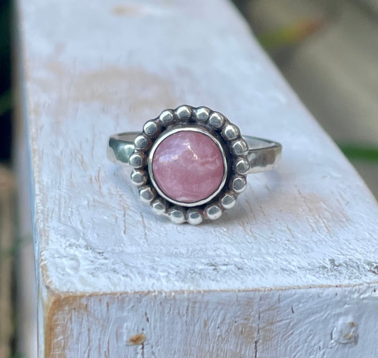 Rhodochrosite Flower Ring – Handmade Sterling Silver, Natural Pink Gemstone (US 7 / AU N ½)
