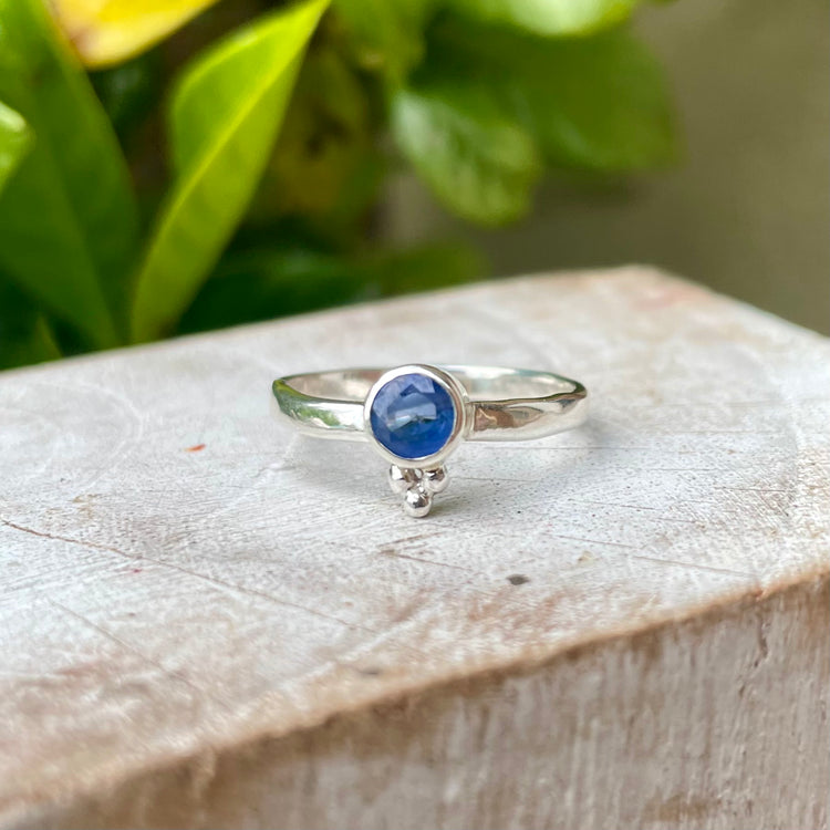 Natural Blue Sapphire Stacking Ring – Sterling Silver with Droplet Detail