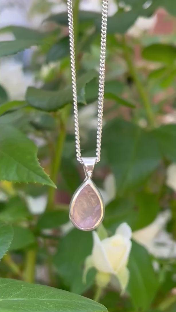 Ready Made Raw Rose Quartz Pendant - Sterling Silver Chain