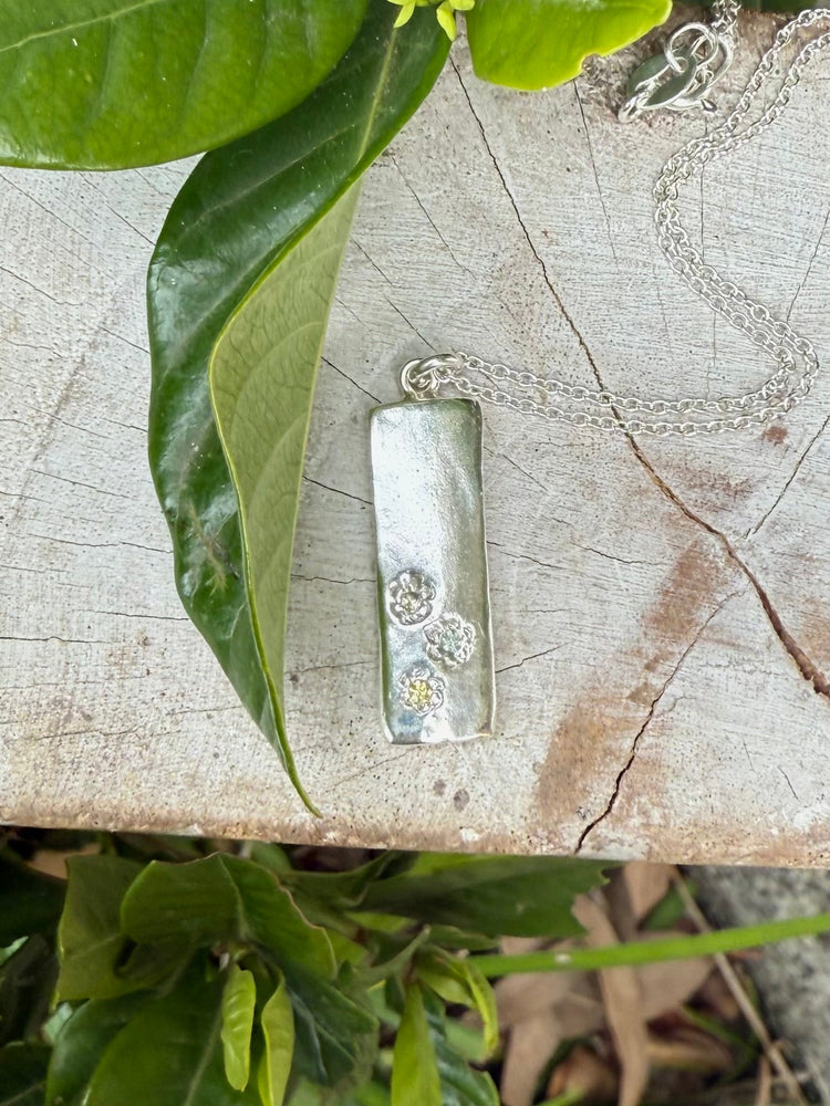 Silver flower pendant with 3 sapphires
